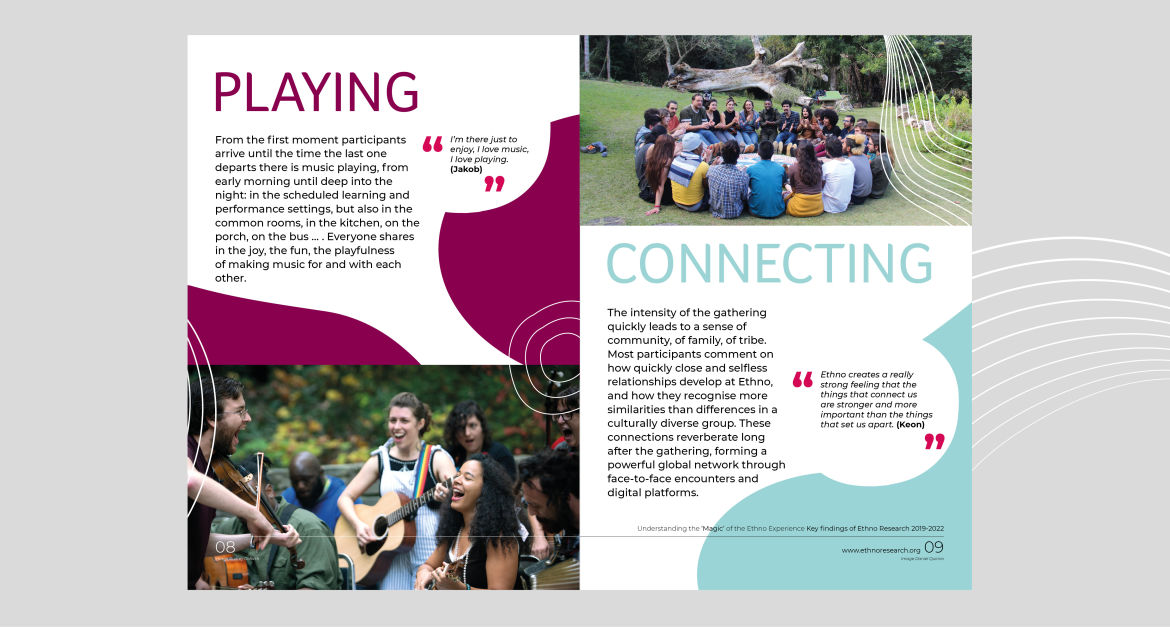 Ellen was approached by York St John University to design their Ehno Report - Ethno Research comprised an international team of 20 researchers led by the International Centre for Community Music at York St John University. Ellen created a design which was fresh, colourful and engaging. The report was used online and in print at a conference in Germany.